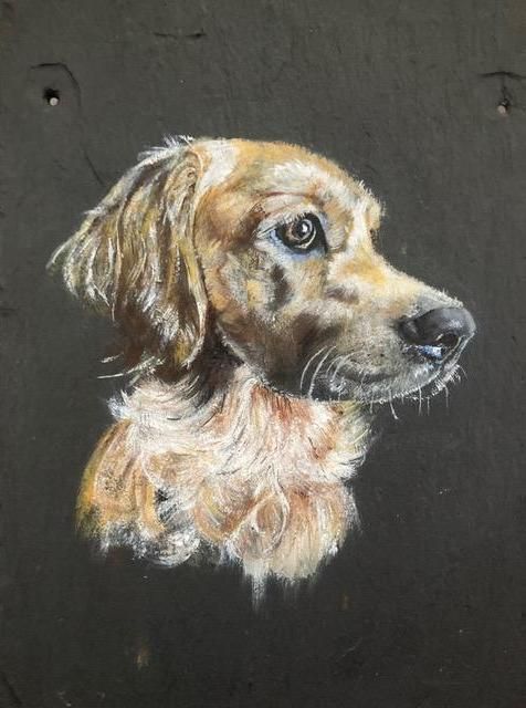 Gillian Edward, Dog Daze Acrylic on Reclaimed Slate 25 x 41 cms £120.00