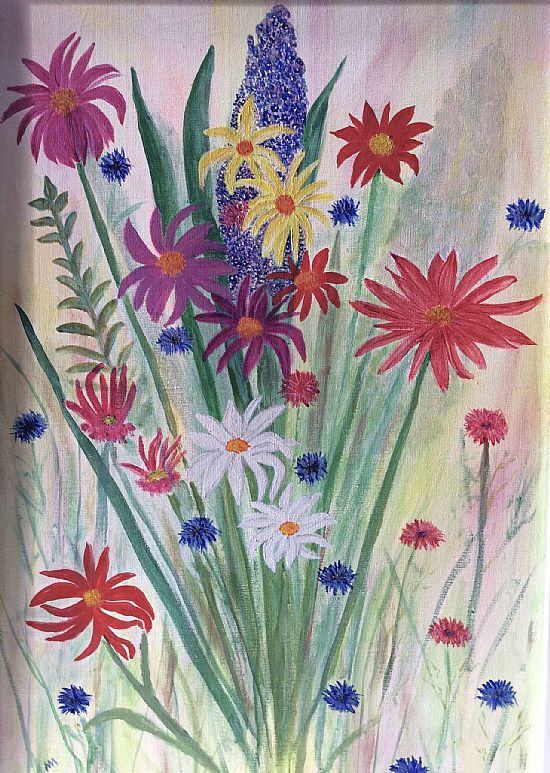Cathy Reid, M Des RCA, Summer Bouquet Acrylic 24cm x 27cm SOLD