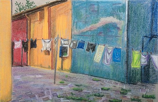 Susie Smith, Italian Washing Line Pastel 37 x 29 cm SOLD